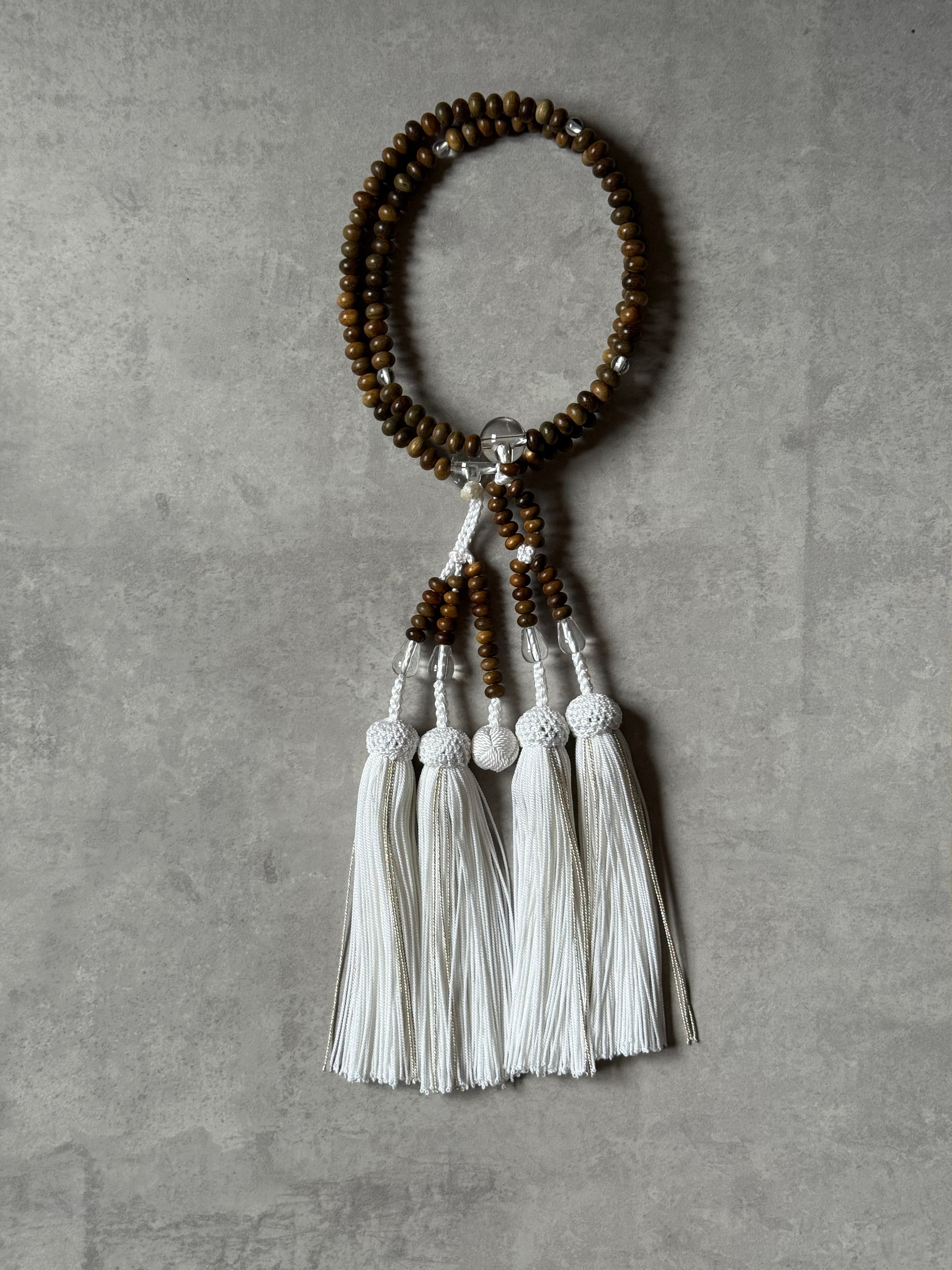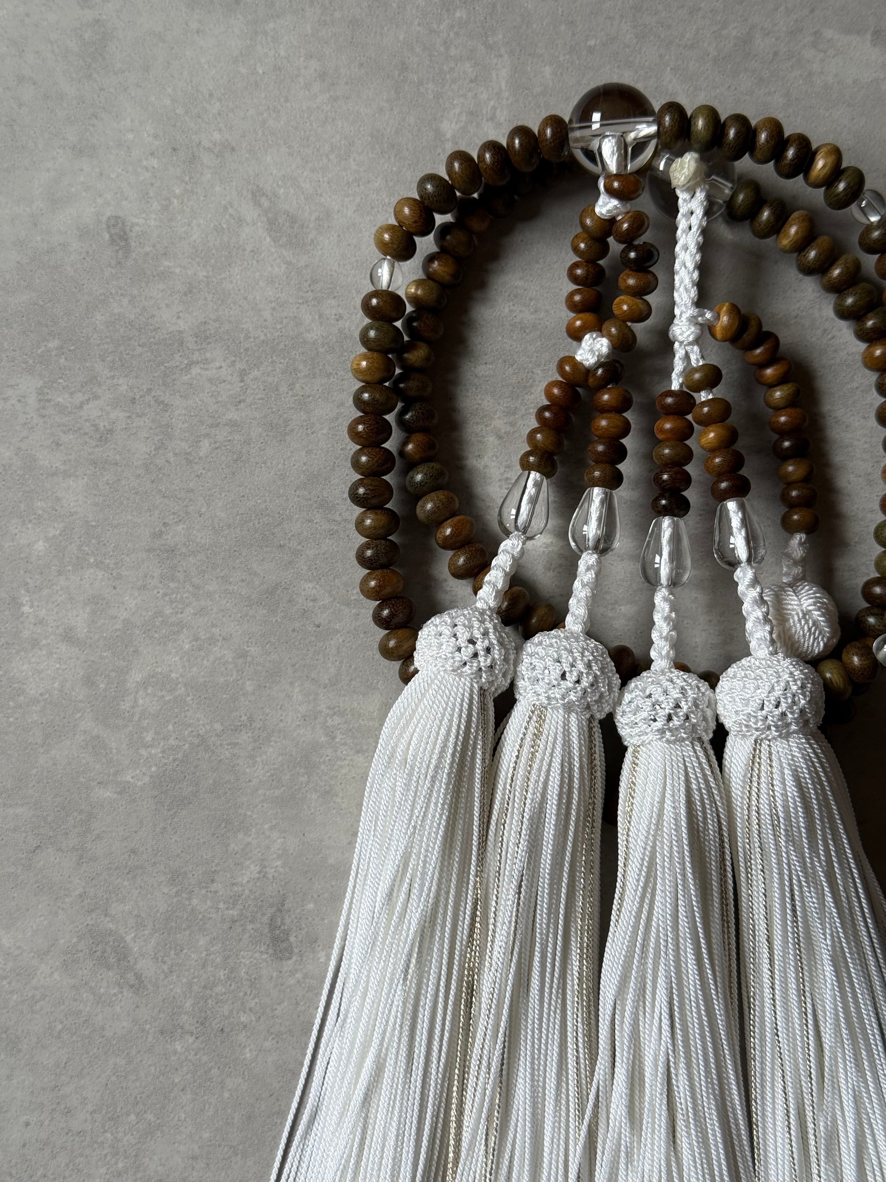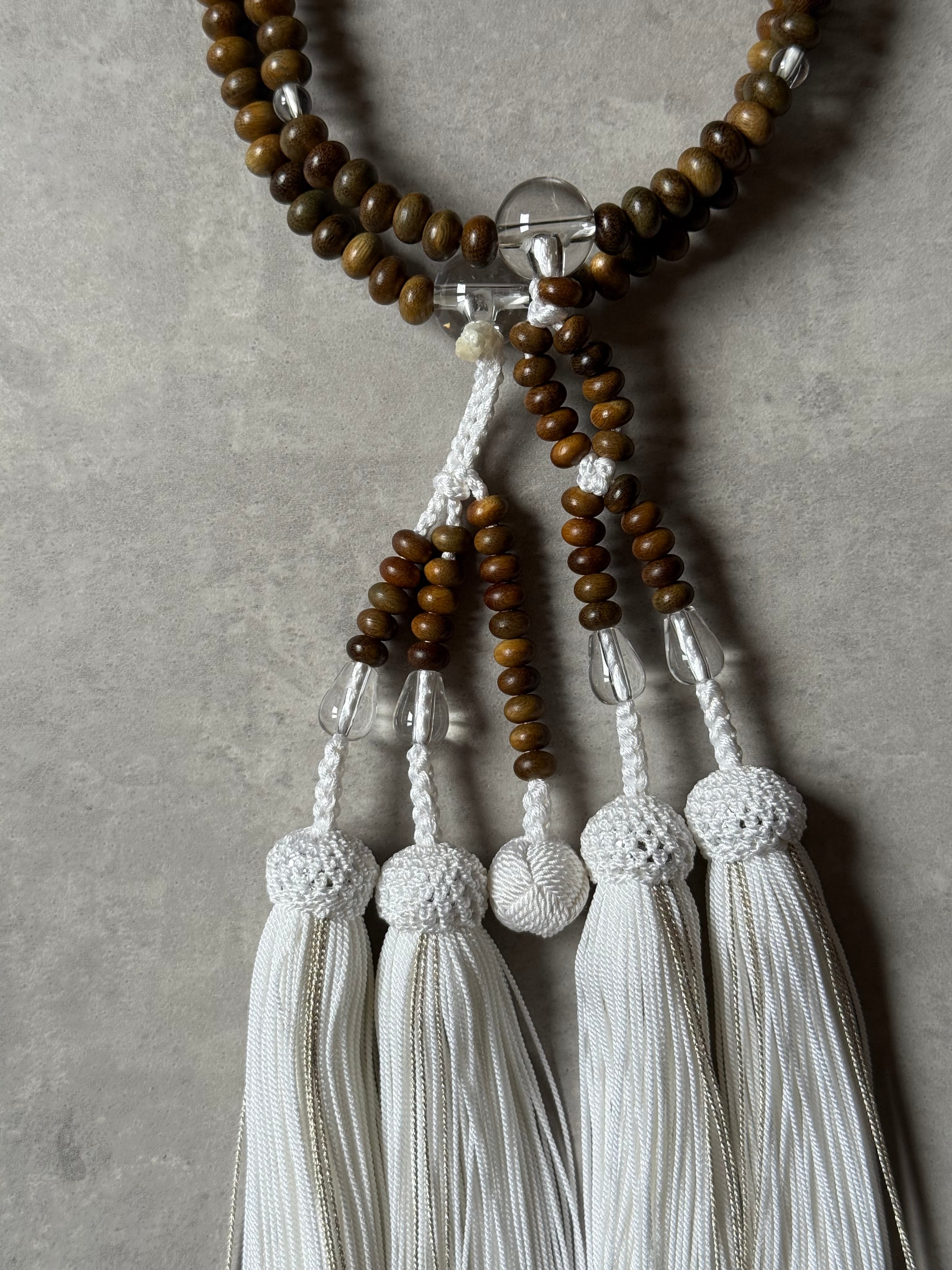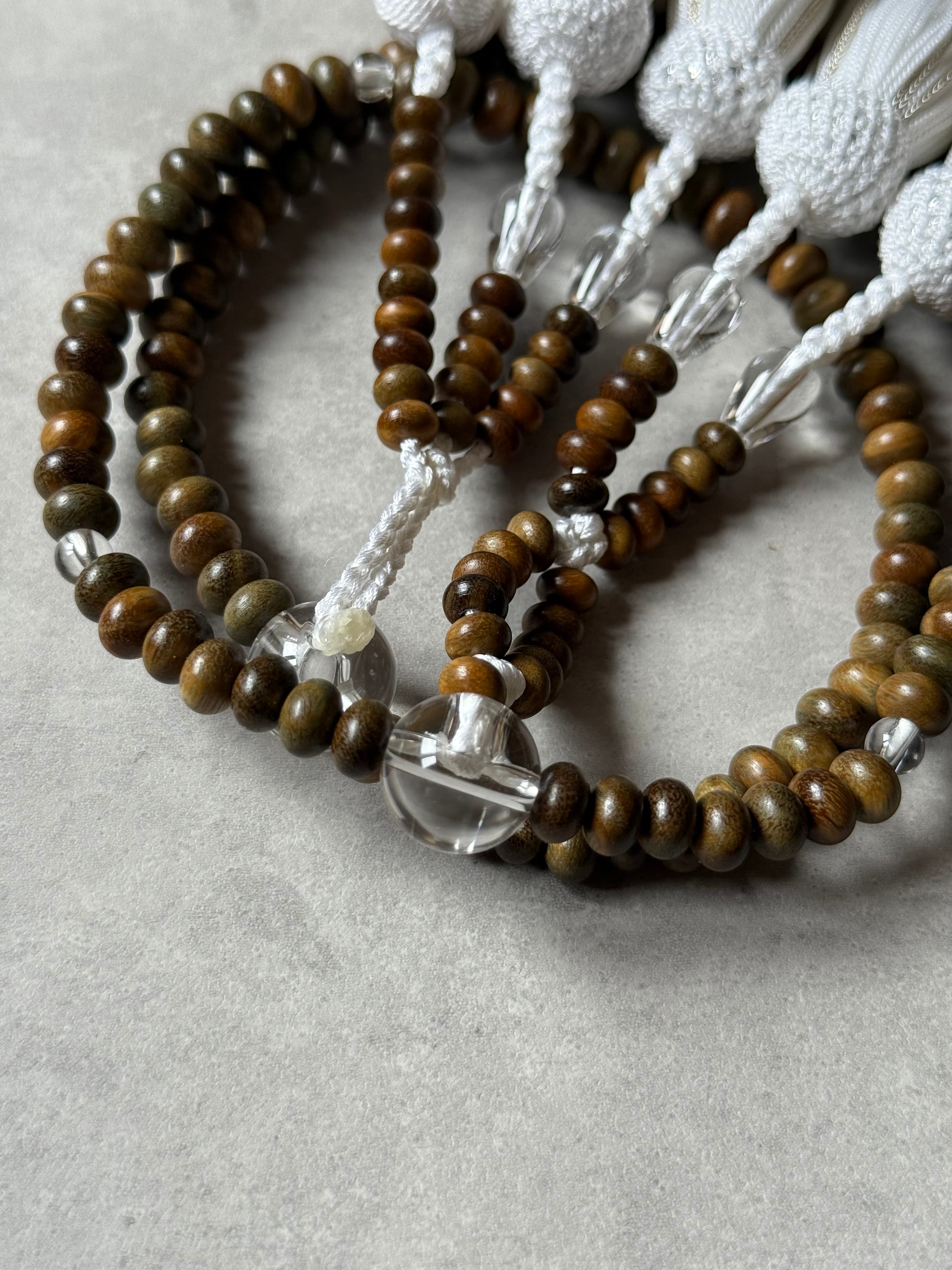 使い続けると艶が出てくる上質な緑檀に水晶を合わせて仕立てました。色味は柔らかなグリーン。爽やかな薫りも感じます。