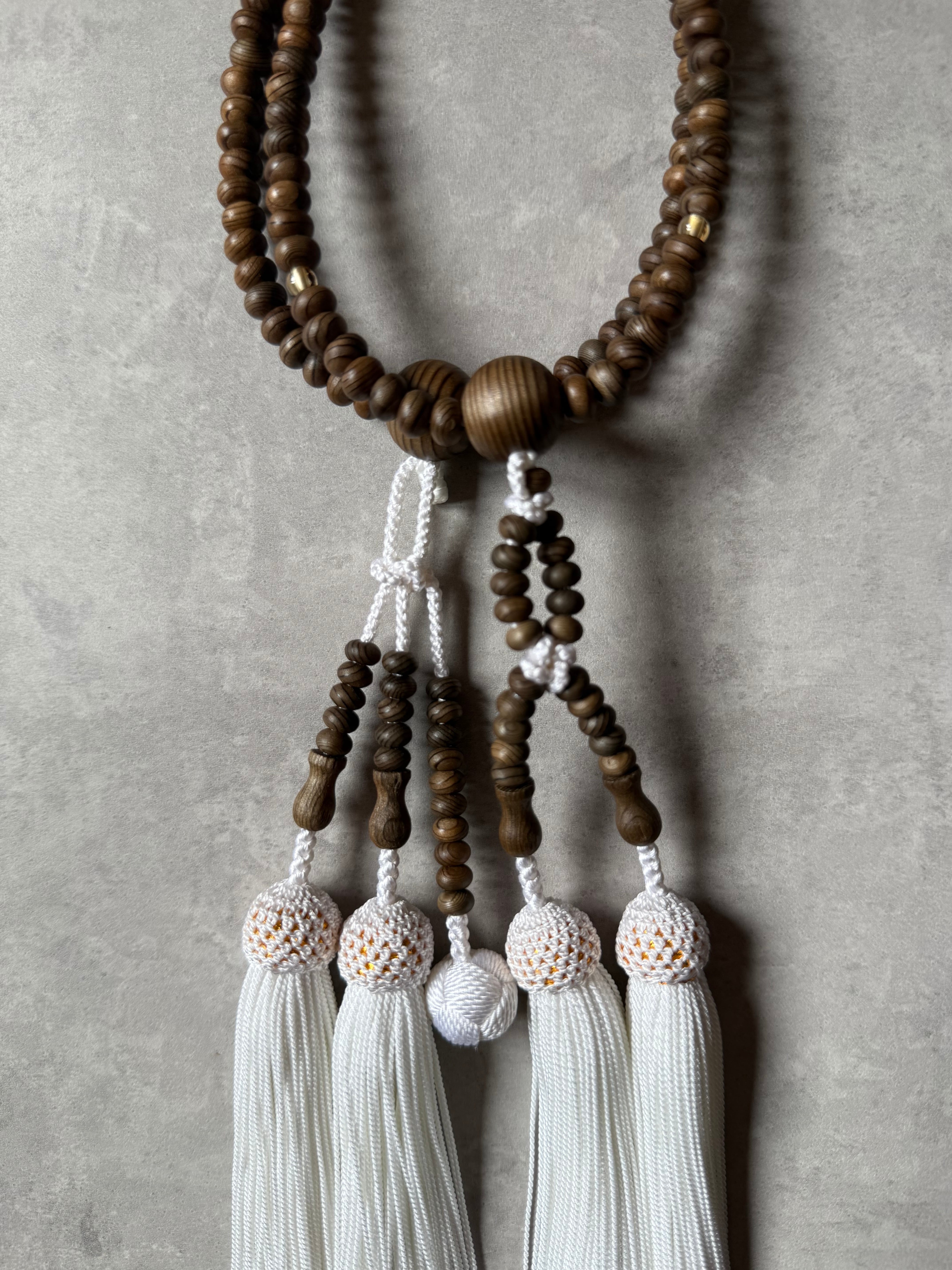 神代杉とは「埋もれ木」のことです。 地中や水の中に長い間埋没していた杉のことを指します。長い間といっても、5年10年の話ではなく何100年〜何千年という途方もない年月です。 様々な偶然が重なり、密閉状態で腐らずに樹木の姿のまま現代まで残ったのです。 木目や色合いがなんとも言えない自然の美しさを醸し出しております。 四天にのみ黄水晶を入れ、仕立てました。 8寸みかん玉。 こちらは桐箱に入れてのお届けでございます。